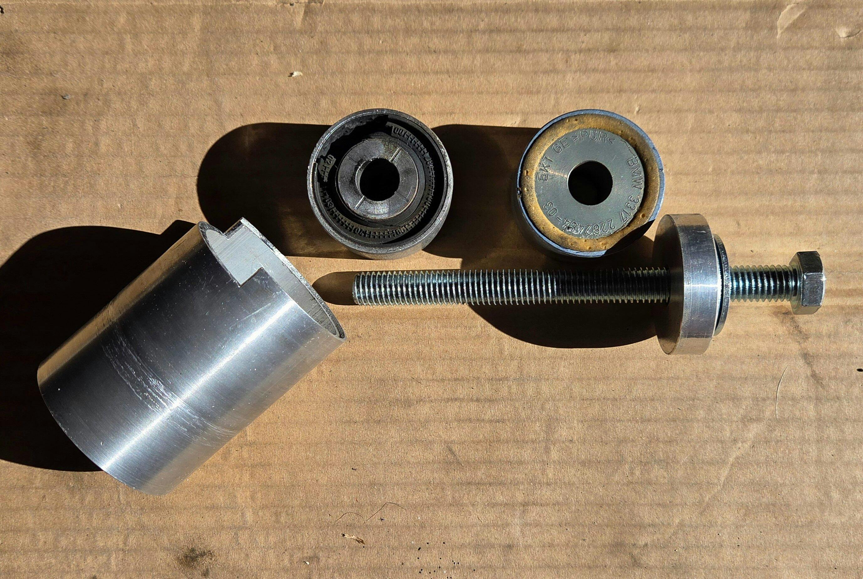 This specialty tool makes quick work of removing and installing the bushing. Because this tool is custom built to this job, the pieces have lips and grooves to hold them in alignment. Most generic tools can move out of alignment as you use the tool, making the job more difficult and potentially causing issues. Our tool stays in place, making the job easier and less prone to error.